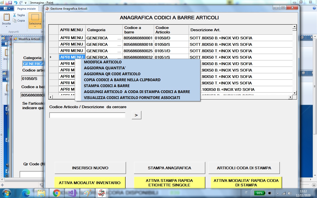 Torna a inizio paginaIl software dispone di una completa gestione della Anagrafica articoli
