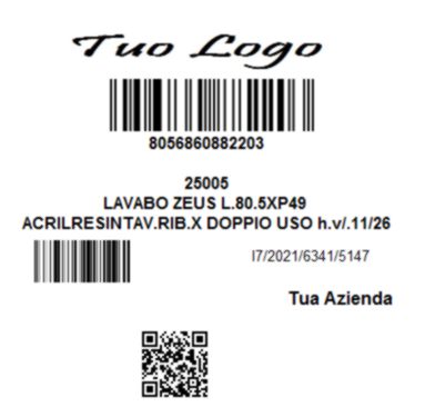 -- E' possibile stampare le etichette barcode personalizzate per singolo cliente con Logo del cliente , Barcode e QR Code specifici del cliente vedi esempio