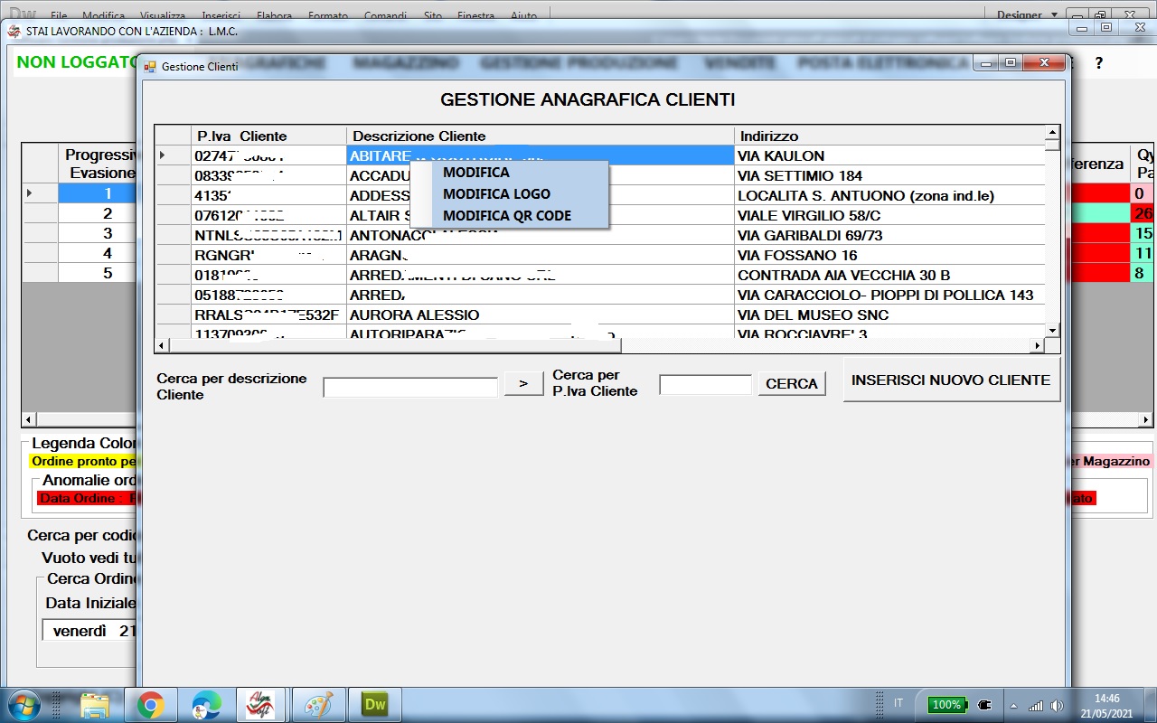 E' possibile caricare il logo dei clienti che verra' stampato sulle etichette dei codici a barre per gli ordini del singolo cliente vedi stampa etichette