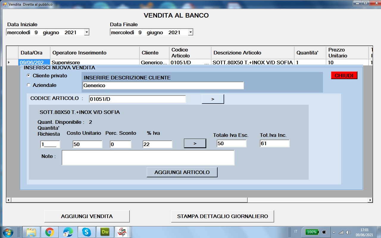 Torna a inizio pagina- Nel Software e' inclusa una completa gestione delle vendite al banco in particolare e' possibile :